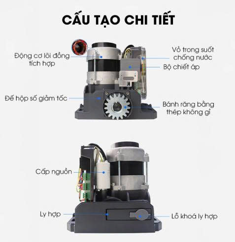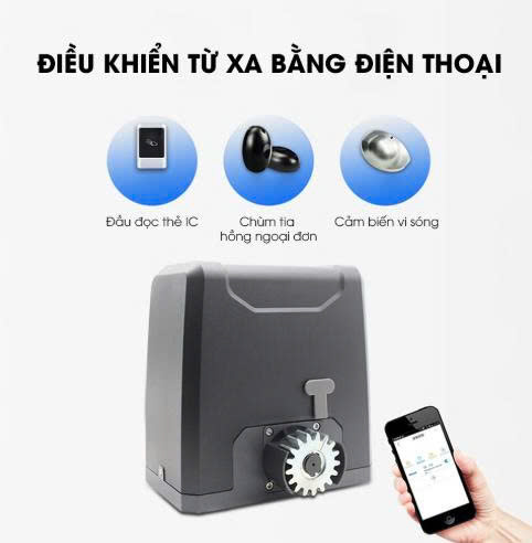 Với khả năng điều khiển linh hoạt từ xa và qua điện thoại di động, motor này mang đến sự tiện lợi tối đa cho người sử dụng. Khoảng cách điều khiển lên đến 30m giúp bạn dễ dàng mở cổng từ bất cứ đâu.